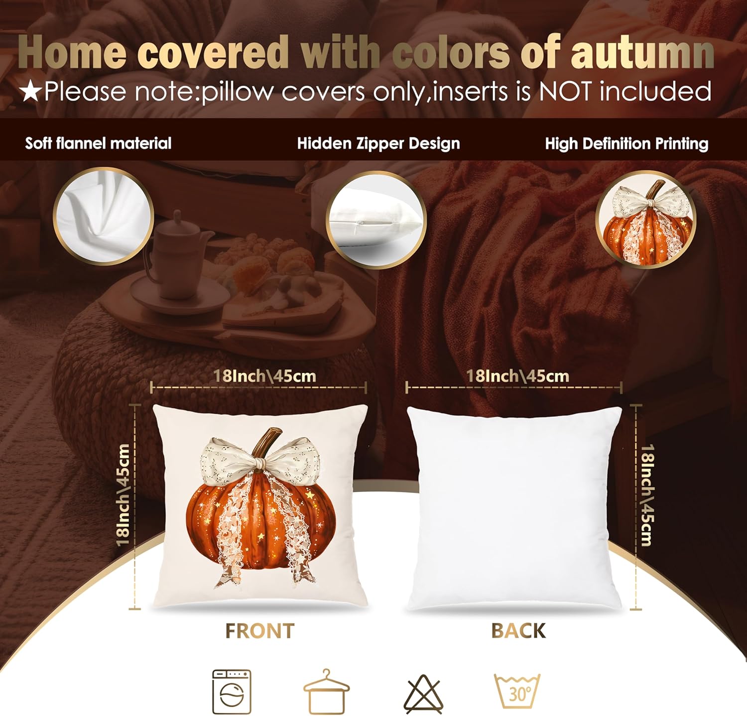 Coquette Lace Bow Pumpkin Fall Pillow Covers 18x18, Shabby Chic Pumpkin Autumn Pillow Covers, Fall Decor Pillow Covers for Couch Bed, Girly Fall Decor, Fall Home Bedroom Living Room Decor