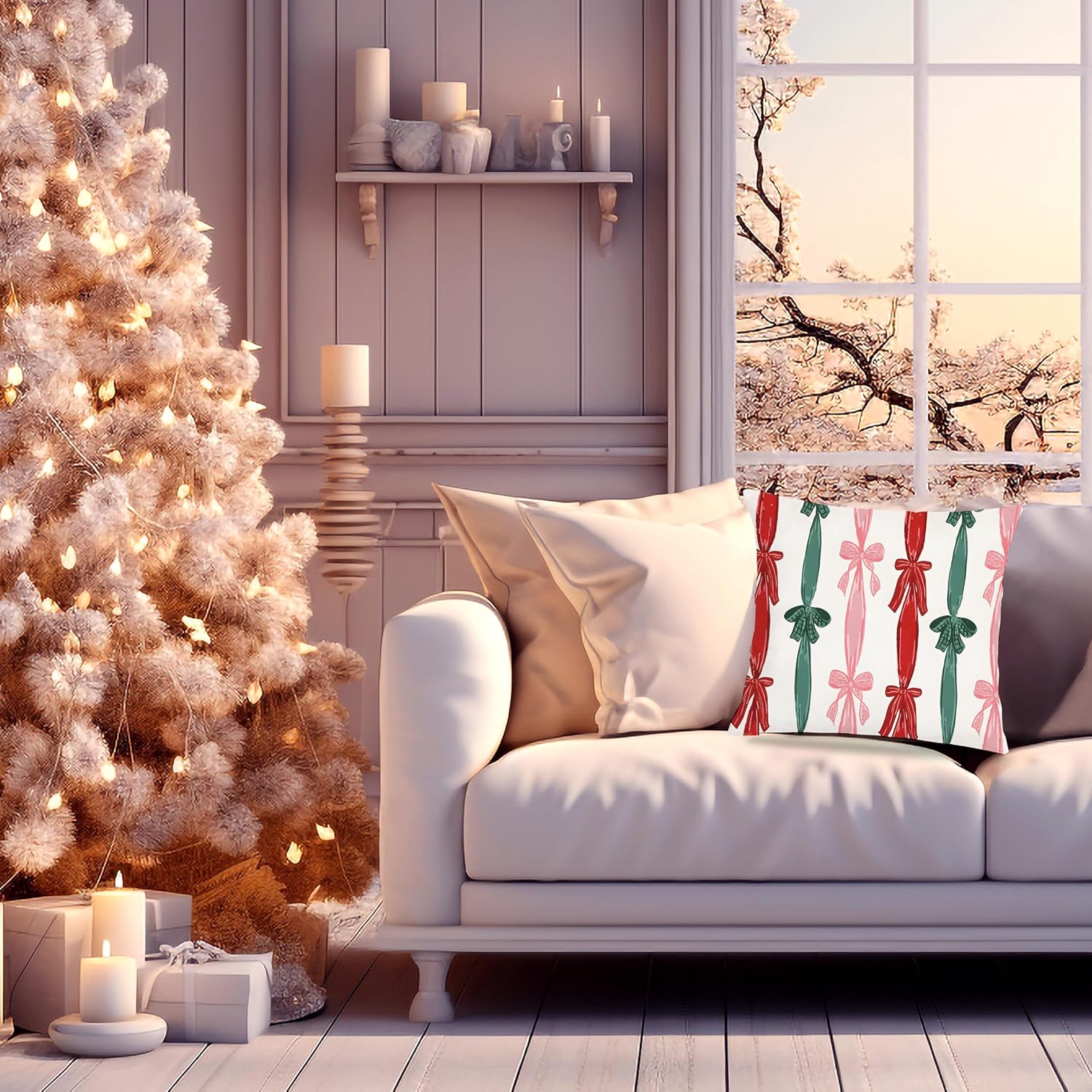 Preppy Christmas Bow Pillow Covers 18x18, Coquette Pink and Green Ribbon Pillow Covers, Preppy Christmas Decor, Pink Christmas Decor, Coquette Christmas Decor